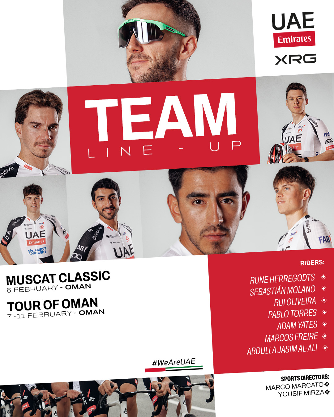 Taking place a day before the Tour of Oman, the Muscat Classic is a leg-opener for the peloton and will be eyed up by the sprinters once more this time out. UAE Team Emirates-XRG will field the same seven rider lineup for both the Muscat Classic and the subsequent Tour of Oman: