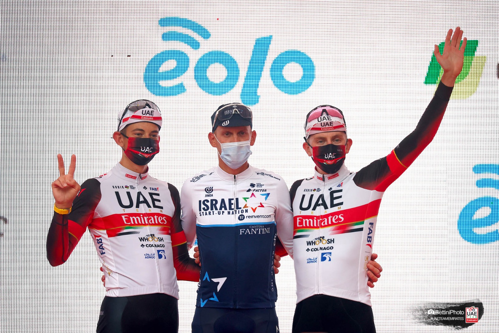 أحرز دراجو فريق الإمارات نتائج متقدمة في النسخة المئوية من سباق تري فالي فاريسيني، والذي أقيم في إيطاليا على مسار بطول 196.7كم انطلاقاً من بلدة بورستو أرسيتزيو وصولاً إلى فاريسي، حيث انطلق تادي بوغاتشار في أداء هجومي مثالي مع وصوله إلى الساعة الثانية من السباق إلى جانب منافسه تيم ويلينز (لوتو سودال)، وذلك قبل أن يشكلّا معاً مجموعة متقدمة ويوسّعا الفارق بينهما وبين المجموعة الرئيسية. كما قدّم ديفيد فورمولو أداء قوياً في مجموعته التي تضمنت أربعة دراجين آخرين، ليتمكن السلوفيني من الوصول إلى زميله في المجموعة المتقدمة قبل 90كم من خط النهاية.