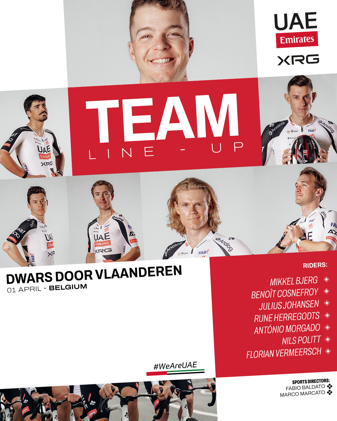 For the 80th edition of Dwars door Vlaanderen, UAE Team Emirates-XRG will hope to be right in the fight for victory.
