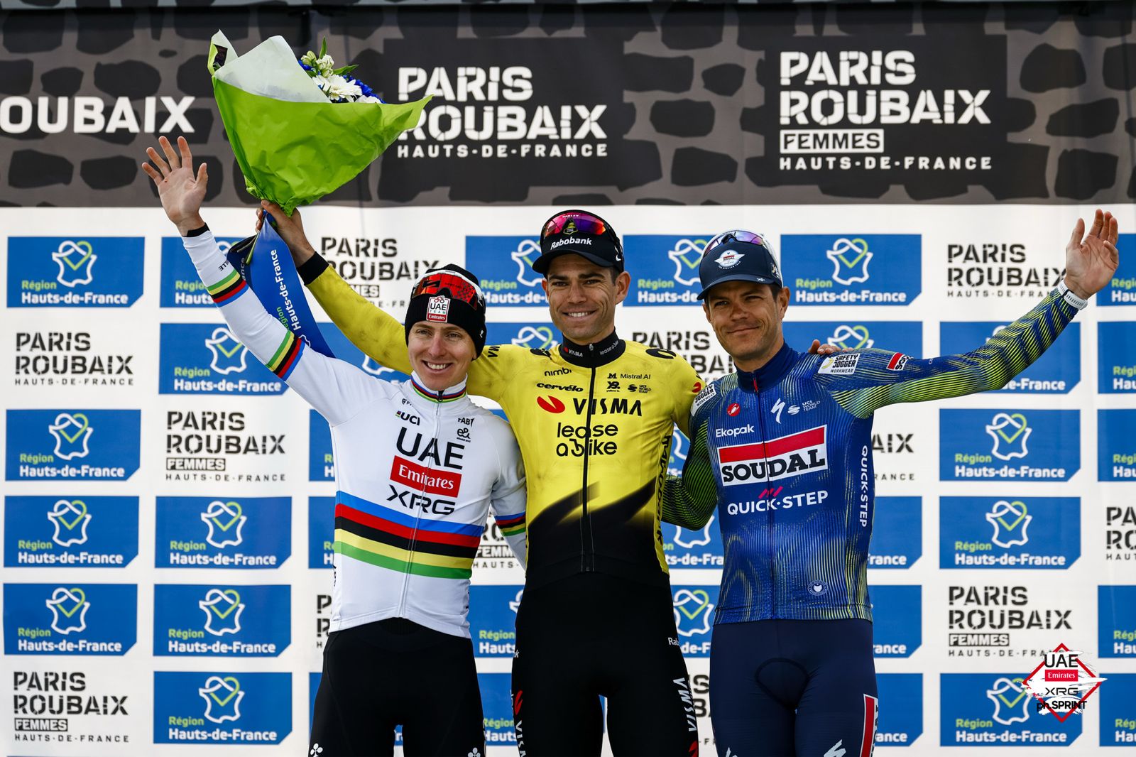 Following further mechanical issues – a bike change for Pogačar and a puncture for Van Aert – the pair launched a decisive attack in the Auchy-lez-Orchies à Bersée sector with 54km remaining. From there, they rode clear together all the way to the Roubaix velodrome, where Van Aert produced a flawless sprint to take victory, leaving the World Champion in second place.