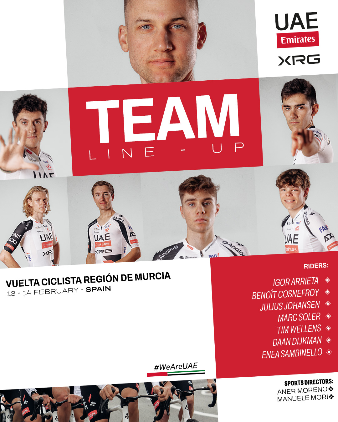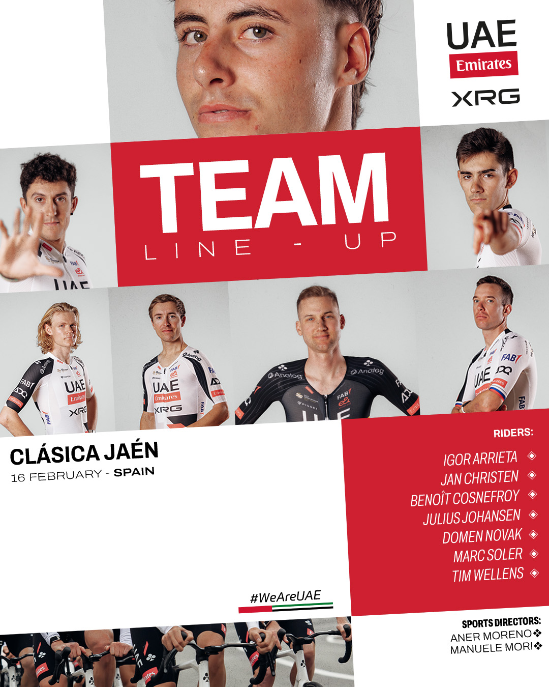 Alessandro Covi won the event in 2022, with Tim Wellens going on to finish on the podium two years later. This time around, Wellens will be for more, alongside a team led by Sports Directors Aner Moreno and Manuele Mori. The full UAE Team Emirates-XRG squad is as follows: