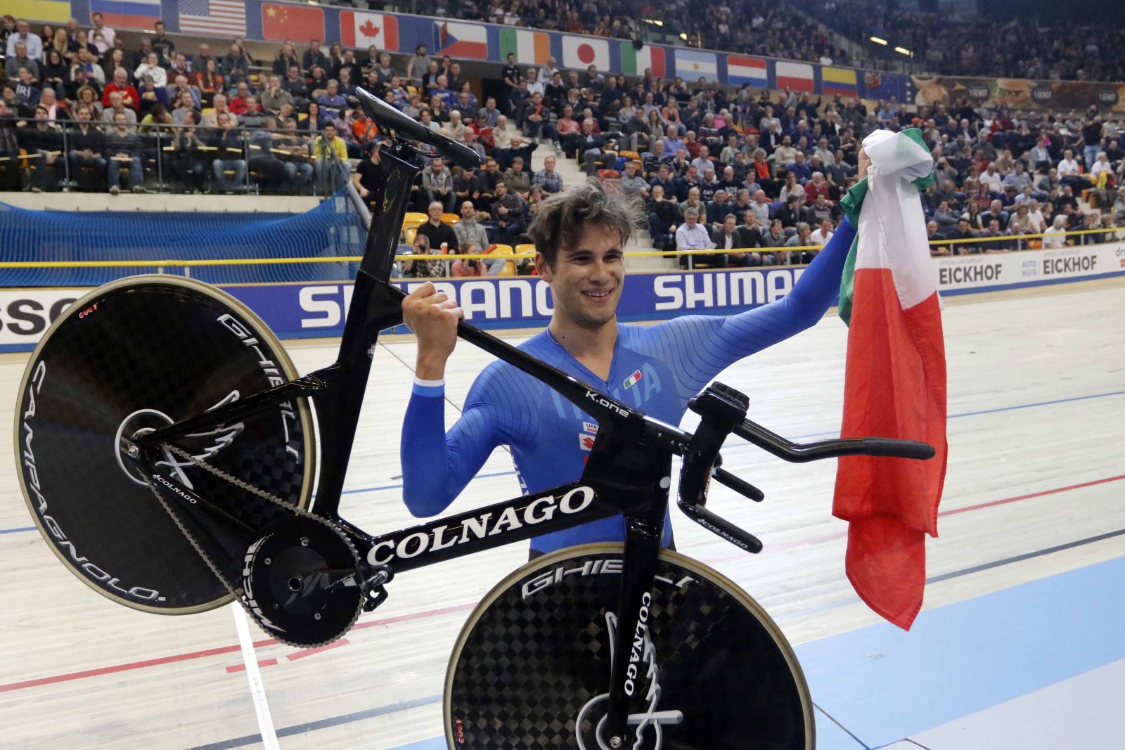 Filippo Ganna was waiting for the big ride today after yesterday helping Italy to the team pursuit bronze medal in the Alpeldoorn world championships and he didn’t let down. He won the individual pursuit gold medal in the Dutch track, setting two Italian records: 4-13.622 in qualifying and 4-13.607 in the final against Portuguese Ivo Oliveira. Oliveira recorded 4-15.428 and 4-12.365 in qualifying.